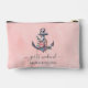 Una elegante bolsa de cosméticos presenta un hermoso diseño acuático de un ancla entrelazado con delicadas flores. Perfecto para una playa, un mar o una escapada de vela. Si necesita algún cambio en el diseño, como color, texto o tipo de letra, póngase en contacto con nosotros a través de Zazzle o en seamistmail@gmail.com. Nos encanta ser parte de tus recuerdos felices.