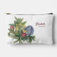 This floral accessory pouch has beautiful laurel and myrtle along with cursive text for the bridesmaid's name. The word bridesmaid is below the name. (Bridesmaid is not in a script.)