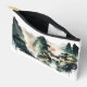 Una pequeña bolsa accesoria con un apacible ilustracion de tinta china de una casa dentro de las montañas.
