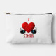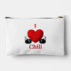 Bonito diseño para el amante del chile. Un corazón con una olla de chili a ambos lados, con una cinta azul ganadora.