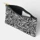 Esta bolsa de accesorios de pequeño tamaño se muestra en una tirita tibia de cebra con acentos de color negro. Imprimir con licencia