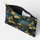 Una pequeña y elegante bolsa accesoria con un patrón de mariposas en brillantes tonos dorados y tonos azules brillantes.