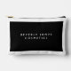 Promociona tu marca con esta elegante bolsa de accesorios con fondo negro, texto blanco y un borde blanco.