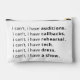 Todo niño del teatro sabe lo que es estar ocupado constantemente montando un espectáculo... Diseño minimalista (porque hay suficiente drama en nuestras vidas) Bolso de maquillaje perfecto para tu maquillaje escénico, o cualquier otra cosa que necesites para el espectáculo (joyería, pulverización de garganta, menta respiratoria, pastillas para el peine) o como bolso de lápiz escolar. No puedo, tengo: audiciones, devoluciones de llamada, ensayos, tecnología, vestimenta, un espectáculo.
