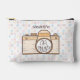 Una bonita cámara dibujada a mano en colores pastel sobre un fondo con motivos de coordinación de cuadrados pálidos. Las palabras "oh snap" se abren en el espacio para el lente. Perfecto para un adolescente o para un amante de la fotografía. Viene con una cámara de color rosa, marrón, azul o amarillo para coincidir con el fondo. Productos a juego disponibles.