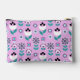 Bolso cosmético lindo con un patrón floral geométrico de estilo escandinavo sobre fondo violeta brillante