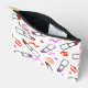 Patrón de lápiz labial con tonos rosas, corales, rojos y violetas. Acentuado con trazos y labios de prueba de color. ¡Mi amor por los colores de los pintalabios me inspiró a crear este diseño único de vidrio! Se muestra aquí en una bolsa de maquillaje de dos tamaños para elegir. Personalízalo con un nombre o cualquier texto. ¡Diseño divertido para cualquier amante de la belleza!