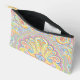 Esta bolsa de artículos de aseo, accesorios de viaje, o diseño de bolsitas para maquillaje, presenta una impresionante combinación de diseño abstracto de moda retro de color verde limón y rosa fucsia brillante, violeta pastel, lavanda, púrpura, azul turquesa acuático y color limón. La variedad de esta combinación de colores y las formas onduladas crean un efecto dinámico y rítmico. La decoración es a la vez elegante y ornamentada, con un toque de honestidad y un toque de hipster. Ya sea buscando una moda y un estilo moderno o una vitalidad vintage y retro, este patrón se adaptará a su gusto y personalidad.