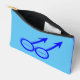 Esta impresionante bolsa de inodoro está diseñada para hombres homosexuales. Presenta dos símbolos masculinos azules uno al lado del otro. El fondo es azul y hay un texto azul personalizable dentro de cada uno de los símbolos para poner nombres.