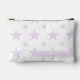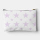 A pretty and feminine purple stars pouch. This modern, elegant cosmetic bag doubles as a pastel pencil case, perfect as a cute toiletry or back-to-school makeup bag for her, girls, or a constellation-themed accessory.