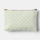 Esta bolsa de cosméticos o accesorios presenta un patrón de trenzas diagonales de color verde claro de jade.