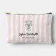 Trata a la novia y a su séquito con esta chic y práctica bolsa de maquillaje personalizada para despedida de soltera, diseñada con rayas rosadas y una ilustración elegante de copa de champán. Personaliza la bolsa con el nombre de la novia, año del viaje y ubicación (por ejemplo, "Despedida de soltera de Sophia • EST. 2025 Mykonos"). Es perfecta para guardar maquillaje, artículos de aseo para viajar, elementos esenciales para la fiesta o incluso kits para resacas.