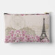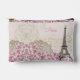 Postal de la torre Eiffel vintage de París con flores rosadas Personaliza la bolsa con el nombre o las iniciales. (tiene París escrito sobre el cierre superior y sobre la bolsa delantera) se puede editar o salir tal como está.