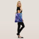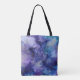 la bolsa de tote azul y violeta sale vestida con estilo.