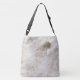Un bolso de cuerpo cruzado que parece la piel blanca y rizada de un perro.