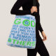 Cita del santo católico romano Thomas Aquinas. Lecturas, en azul verde y demócrata, DETERMINAN LO QUE DIOS TE HA DADO Y TOMEN DE ELLA LO QUE NECESITAS. EL RESTO LO NECESITAN OTROS. Genial para cualquiera que apoye a la izquierda cristiana. La bolsa es muy azul pálido, pero se puede cambiar a cualquier color que quieras. Las palabras están en letras verdes y en azul demócrata. Tomen un mensaje de amor y responsabilidad personal por ayudar a otros dondequiera que vayan.