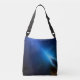 Una hermosa transición de tonos azules a blancos azulados y tonos azul oscuro a negro a lo largo del perímetro bajo los tonos marrones rojizos al final del cubo alargado se acumula.<br>() Bolsa cruzada de cuerpo de la funda azul de la hoja de cálculo de la PAOM