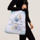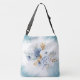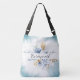 Este elegante bolso de cuerpo cruzado muestra un delicado arreglo de polvorientas flores azules, blancas y acuarelas doradas, lo que lo convierte en un accesorio encantador para un boda o cualquier ocasión especial. El diseño presenta la palabra "dama de honor" en un guión elegante, lo que lo convierte en un regalo reflexivo y personalizado para su fiesta nupcial. Su correa ajustable ofrece un cómodo desgaste manos libres y un toque romántico a cualquier conjunto.