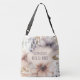 Boho Moda Florals Deja Nombre Bag. Para llevar los trozos y piezas importantes de su bebé al estilo bohemio con flores modernas de color rosa y gris. Fácil de personalizar el texto.