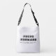 Esta bolsa transversal presenta un diseño elegante de línea de texto que dice "Enfoque hacia adelante para un futuro mejor". Se puede personalizar el color de los elementos de diseño, así como el contenido textual de "Por un futuro mejor".