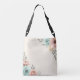 Esta bolsa tote personalizada presenta delicadas flores sketchy con texturas suaves de acuarela en rosa rubor, verde menta y amarillo pálido.