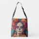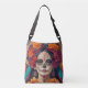 Este hermoso bolso de cuerpo cruzado está inspirado en el Día de los Muertos, que presenta un ilustracion de una "Catrina". Esta bolsa sería perfecta para una chica o mujer que ame la celebración del Día de los Muertos o la cultura mexicana.