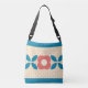 Bolso Cruzado Flor Retro, Coral De Patrón Geo, Azul, Peach