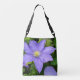 Esta bolsa carryall presenta una hermosa flor de clemátide púrpura que crece en una vid en Connecticut. Sería un regalo perfecto de cumpleaños o para dama de honor.