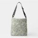 Flores blancas y de colores pastel sobre un fondo verde sabio hacen una bolsa de cuerpo cruzado dulce y femenino. Perfecto para todo aquel que ame las flores y la naturaleza.