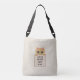 Bella bolsa beige con un gato lindo en un bolsillo y un mensaje: LA VIDA ES MEJOR CON UN GATO. ¡El texto se puede personalizar!