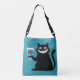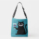 Bolso Cruzado Gato negro sonriente con pescado en un vaso
