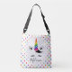 La bolsa de tocador Glam Rainbow Unicorn diseñada por la Enchantcapy Design Company presenta el contorno de la cara de un unicornio con pestañas glamorosas, orejas, un peinado y un fabuloso cuerno de unicornio arcoiris brillante. Un patrón de estrellas arcoiris acentúa el fondo. ¡Personaliza tu elección de nombre! Esta alegre bolsa de té es un regalo perfecto.