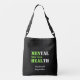 Una BARRA de CROSSBODY motivacional que promueve la salud mental de los hombres, y hombres motivadores para hablar. El diseño muestra las palabras SALUD MENTAL combinadas con HOMBRES QUE HABLAN SALUD. Hay un versículo de guiones del marcador de posición de Eclesiastes en la parte delantera y un nombre del marcador de posición en la parte inversa, que son PERSONALIZABLES, por lo que puede personalizar con su nombre, organización o texto de su elección. Parte de la colección MENTAL HEALTH.