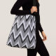 Patrón de trineo Ikat chevron / flame con una textura estriada y tejida - negro y blanco clásico sobre una bolsa de impresión de color gris plateado/gris