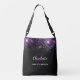 Un elegante fondo negro. Decorado con polvo de purpurina falsa púrpura. Personalice y agregue su primer nombre, iniciales de monograma y nombre completo. El nombre está escrito con un estilo de letra manuscrita.