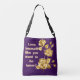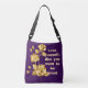 paarse cross body tas met het opschrift 'Lover yourself like you want to be loved. Een belangrijke boodschap