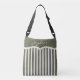 This hand drawn shoulder bag has vertical olive green and cream stripes with a scalloped top edge and a customizable name area in elegant script. The black adjustable strap makes it comfy for daily wear. So use it when you're heading to school, the library, or out for a weekend stroll. Add your name, nickname, or favorite word to make it uniquely yours.