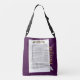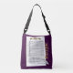 "¿Dónde está la parte de la garganta?" - Una bolsa tote de cuerpo cruzado para los Wagnerites y los amantes de la música - un diseño original de ZoeSPEAK, usando la página de inicio de la partitura completa de la ópera "Parsifal" de Richard Wagner, y un egret amante de la música buscando su parte para cantar. El color de fondo de la bolsa es morado profundo, pero puedes elegir cualquier color que prefieras.