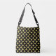 Elegante estampado beige dorado de cuatro puntas sobre bolsa negra.