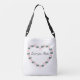 A soft watercolor heart made of blush pink peonies and airy green leaves surrounds the tender message “Mom You Are Loved,” written in gentle plum lettering. A muted gold year rests beneath the floral heart and can be updated through the editable template, creating a heartfelt accent for Mother’s Day outings, brunch celebrations, and everyday wear. The delicate botanical artwork brings a warm, feminine touch to a crossbody bag that keeps love close at hand.