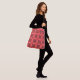 Las damas de la gran Bolsa de Crossbody tienen un patrón de puntos decorativos en rosa y gris sobre un fondo rojo.