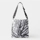 Bolso Cruzado Rústicas ramas de árboles abstractos en blanco y n