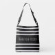 Texto personalizado sobre la bolsa de tote con rayas blancas y negras. ¡El texto es personalizable! El diseño sencillo combina con la ropa informal y elegante. Bellas mujeres de moda Tote Bags. Bolsas de compras clásicas a rayas.