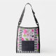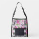 Este bonito tote, adornado con rayas negras y blancas, floridas rosas y con puntos de polka, es perfecto para cualquier ocasión.