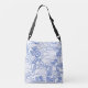 Blue Vines and Flowers Crossbody Bag por © Cathy Thompson es una hermosa bolsa con un elegante diseño de líneas en Royal Blue sobre un fondo blanco.