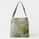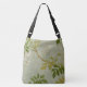 Gran bolsa de cuerpo cruzado de poliéster de poliéster cepillado y todo sobre-impreso con una imagen de glicinia blanca aromática colgada de las viñas verdes de hojas.