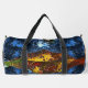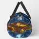Bolso de deporte grande con diseño de unez de colores en el fondo del mar. Fondo marino de fantasía con textura metálica. Diseño de vidriera.