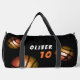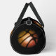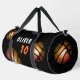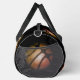 Bolsa de Baloncesto Nombre del jugador metálico Número Bolsa de Duffle. Esta bolsa deportiva presenta baloncesto metálico vibrante sobre un fondo oscuro. Las bolas brillantes le dan un toque moderno al diseño. Añade tu nombre y número.