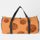 Baloncesto Bolsa Fun Deportista Nombre Número Bolsa Duffle. El diseño tiene pelotas de baloncesto en un fondo naranja. Añade tu nombre y número de jugador.