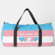 Bolsa de duffle con la bandera del orgullo transgénero con corazones pequeños en el centro del diseño. Bandera rosa, blanca y azul del movimiento de orgullo trans; con un campo de texto editable para tu nombre o mensaje